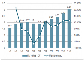 2019年1-11月短視頻綜合平臺用戶規(guī)模