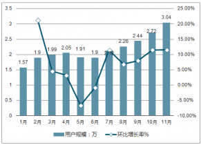 2019年1-11月短視頻綜合平臺(tái)用戶規(guī)模