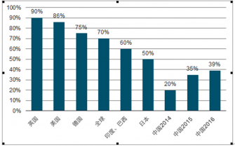 2015年全球主要地區(qū)新車汽車金融滲透率(中國 2015-2017 )