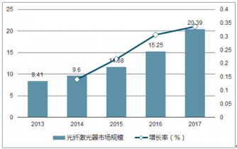 2013-2017 年全球光纖激光器市場規(guī)模 單位:億美元