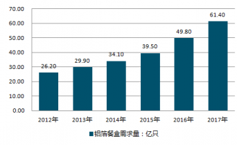 2012-2019年中國(guó)鋁箔餐盒行業(yè)需求量情況