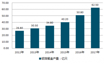 2012-2019年中國(guó)鋁箔餐盒行業(yè)產(chǎn)量情況