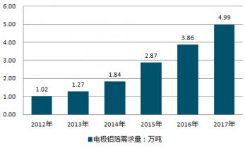 2012-2019年中國電極鋁箔行業(yè)需求量情況
