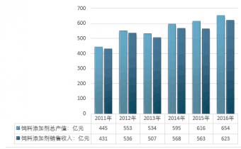 2011-2019年中國飼料添加劑行業產值情況