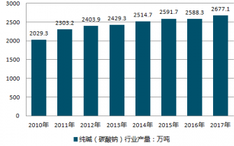 2010-2019年中國純堿(碳酸鈉)行業(yè)產(chǎn)量情況