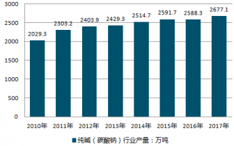 2010-2019年中國純堿(碳酸鈉)行業(yè)產(chǎn)量情況