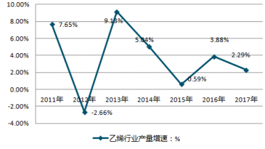 2011-2019年中國乙烯行業(yè)產(chǎn)量增速情況