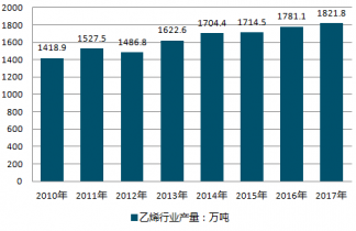 2010-2019年中國乙烯行業(yè)產(chǎn)量情況