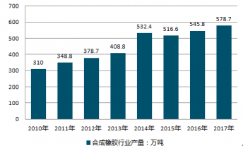 2010-2019年中國合成橡膠行業(yè)產量情況