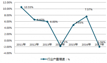 2011-2019年中國乳制品行業(yè)產(chǎn)量增速情況