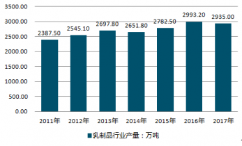2011-2019年中國乳制品行業(yè)產(chǎn)量情況