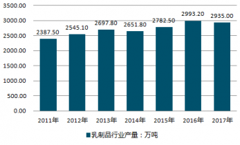 2011-2019年中國乳制品行業(yè)產(chǎn)量情況