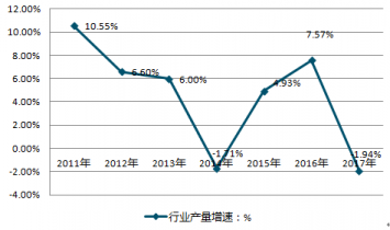 2011-2019年中國乳制品行業(yè)產(chǎn)量增速情況
