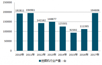 2010-2019年中國挖掘機(jī)行業(yè)產(chǎn)量情況