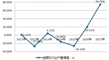2011-2019年中國挖掘機(jī)行業(yè)產(chǎn)量增速情況
