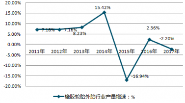 2011-2019年中國橡膠輪胎外胎行業(yè)產(chǎn)量增速情況