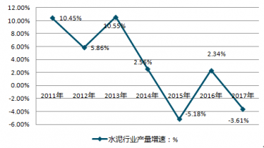 2011-2019年中國(guó)水泥行業(yè)產(chǎn)量增速情況