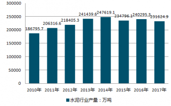 2010-2019年中國(guó)水泥行業(yè)產(chǎn)量情況