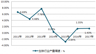 2011-2019年中國生鐵行業(yè)產(chǎn)量增速情況