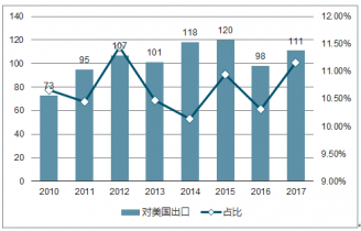 美國(guó)對(duì)我國(guó)鋼鐵加征關(guān)稅,勢(shì)必會(huì)對(duì)我國(guó)鋼材出口產(chǎn)生一定負(fù)面影響。以 2017 年為例,我國(guó)對(duì)美國(guó)鋼鐵及鋼鐵制品出口額 111.27 億美元,占我國(guó)鋼鐵及制品總出口額11.16%。