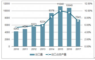 我國(guó)鋼材出口量及占總產(chǎn)量比重