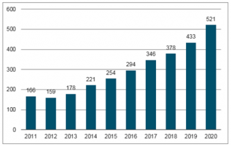 2009-2020年全球工業(yè)機(jī)器人供應(yīng)量預(yù)測(cè)(單位:千臺(tái))