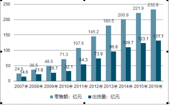 2007-2016年中國(guó)戶外用品行業(yè)市場(chǎng)規(guī)模