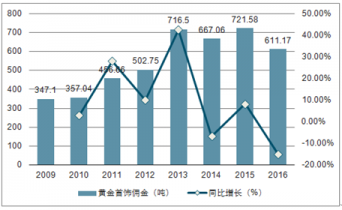 2009-2019年黃金首飾需求變化情況