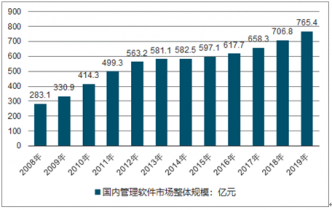2008-2019年國內(nèi)管理軟件市場(chǎng)整體規(guī)模
