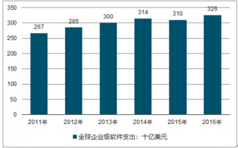 2015 年全球企業(yè)級軟件市場規(guī)模為3,100 億美元。2016 年,企業(yè)級軟件市場將增長至3,260 億美元,與2015 年相比增長5.3%。