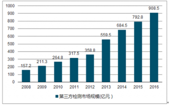 2008-2019年中國第三方檢測市場規(guī)模情況