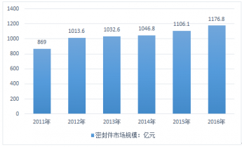 2011-2016年中國密封件行業(yè)市場規(guī)模情況