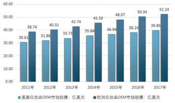 2011-2019年歐美化妝品OEM市場規(guī)模走勢圖 |