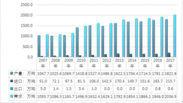 2007-2019年我國乙烯供需平衡統(tǒng)計(jì) |