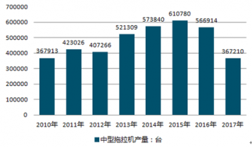 2010-2019年中國(guó)中型拖拉機(jī)行業(yè)產(chǎn)量情況