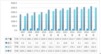2007-2019年我國(guó)純堿供需平衡統(tǒng)計(jì) |