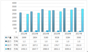 2012-2019年我國燒堿供需平衡 |