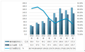 2010-2019年中國植物提取物行業(yè)出口及占比銷售比重 |