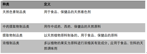 植物提取物(Plant Extract)是指以植物(包括組織、果實等)為原料,經(jīng)過物理化學提取分離過程, 定向獲取和濃集植物中的某一種或多種有效成分,而不改變其有效成分結極所形成的產(chǎn)品。它可作為原料,廣泛應用于食品飲料、藥品、保健品、化妝品等下游行業(yè)。 植物提取物種類眾多,目前進入工業(yè)化提取的種類超過300種。其分類方法有多種,根據(jù)有效成分的 含量可分為有效單體提取物、標準提取物和比率提取物三類;按成分分為甙、酸、多酚、多糖、萜 類、黃酮、生物堿等;按照產(chǎn)品形態(tài)可分為植物油、浸膏、粉、晶狀體等。按照用途,植物提取物 又可分為天然色素制品類、中藥提取物制品、提取物制品類和濃縮制品類。