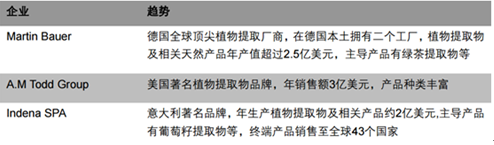 國外代表性的植物提取物生產(chǎn)企業(yè) |