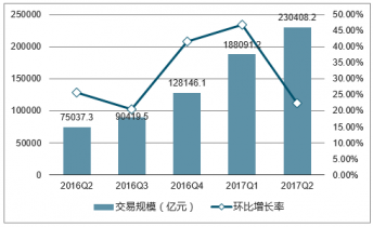 2016Q2-2017Q2中國第三方支付移動支付市場交易規(guī)模