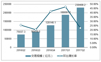 2016Q2-2017Q2中國第三方支付移動支付市場交易規(guī)模