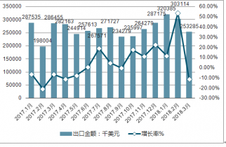 2017-2019年Q1中國(guó)自行車出口金額及增長(zhǎng)走勢(shì)