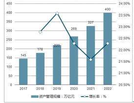 2017-2022年我國資產(chǎn)管理規(guī)模及增長率預測