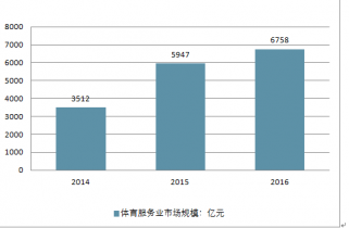2014年中國體育服務(wù)業(yè)市場規(guī)模為3512億元,2015年為5947億元, 2016年為6758億元。