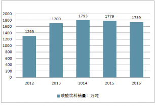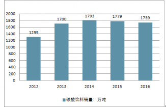 2014年碳酸飲料銷量達到巔峰,逼近1800萬噸,此后碳酸飲料開始走下坡路,銷量持續(xù)下滑,2016年碳酸飲料銷量跌至1739萬噸。