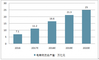 2016-2020年電商物流行業(yè)總產(chǎn)值預(yù)測