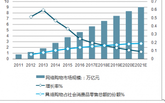 2011-2021年中國網(wǎng)絡(luò)購物市場規(guī)模及增長率