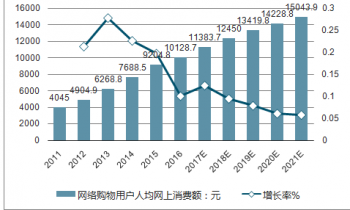 2009-2021年中國網(wǎng)絡(luò)購物用戶人均網(wǎng)上消費(fèi)額