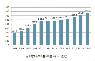2008 年-2019 年國內(nèi)軟件市場整體規(guī)模(單位:億元)